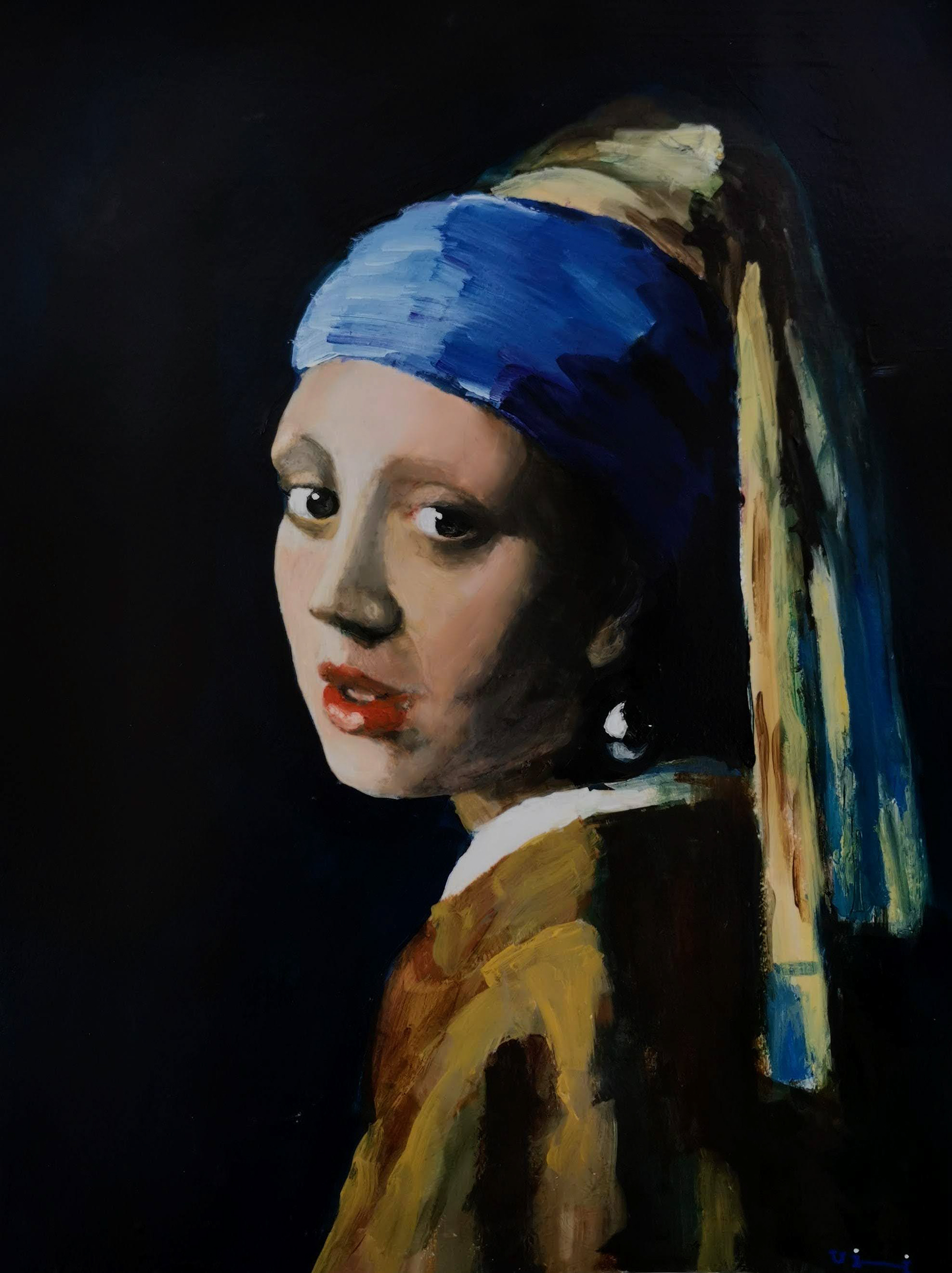 Just a study of the young girl with a pearl, emphazising the capture of the atmosphere rather than trying to be 100% accurate.